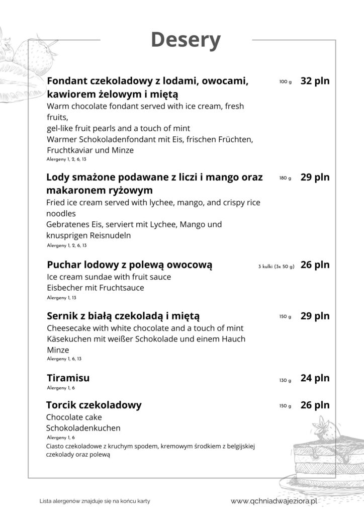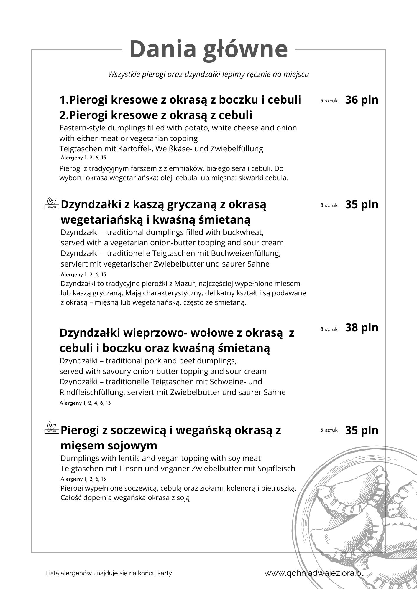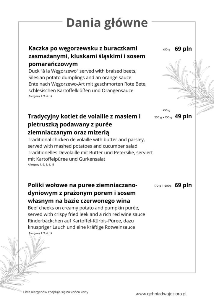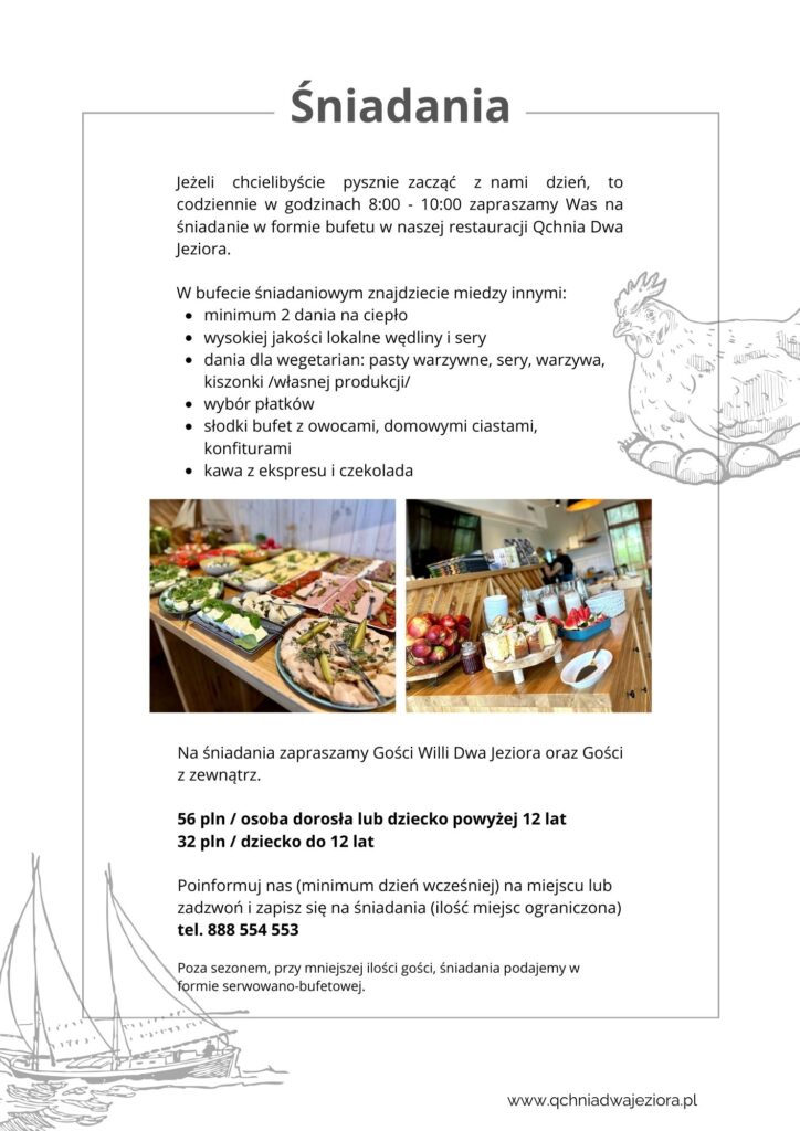 Nasza restauracja – Qchnia jest częścią resortu wypoczynkowego Dwa Jeziora, składającego się z butikowego pensjonatu, spa, restauracji, a także wielu atrakcji na terenie resortu tj: minigolf, sauna, sala gier, boiska sportowe itp.