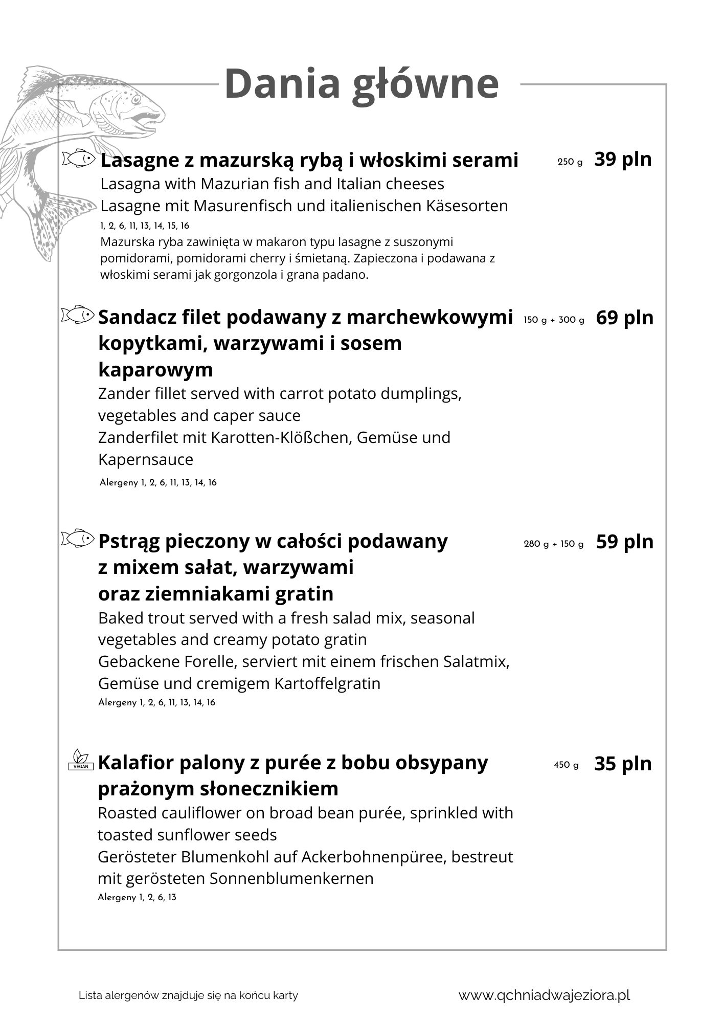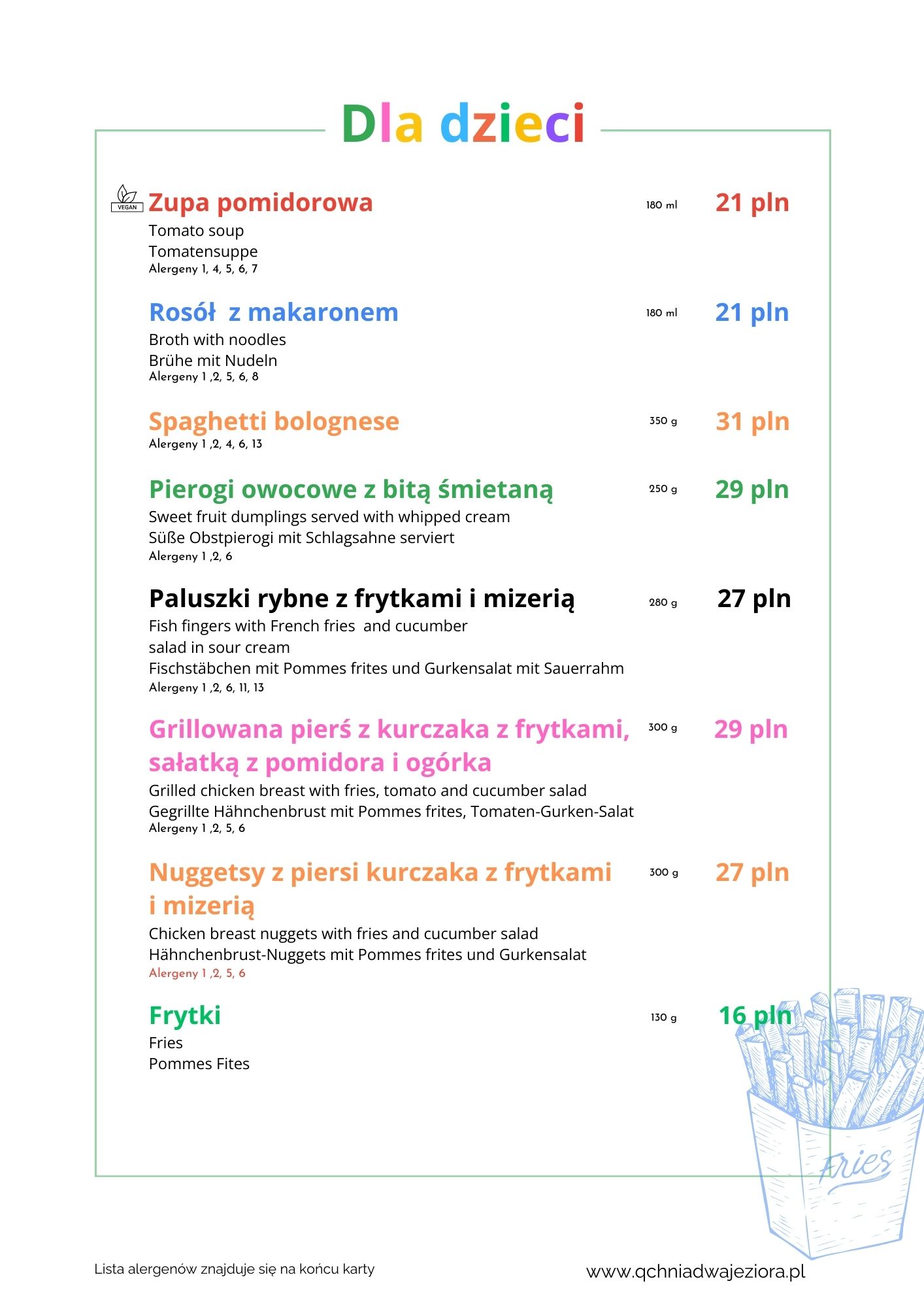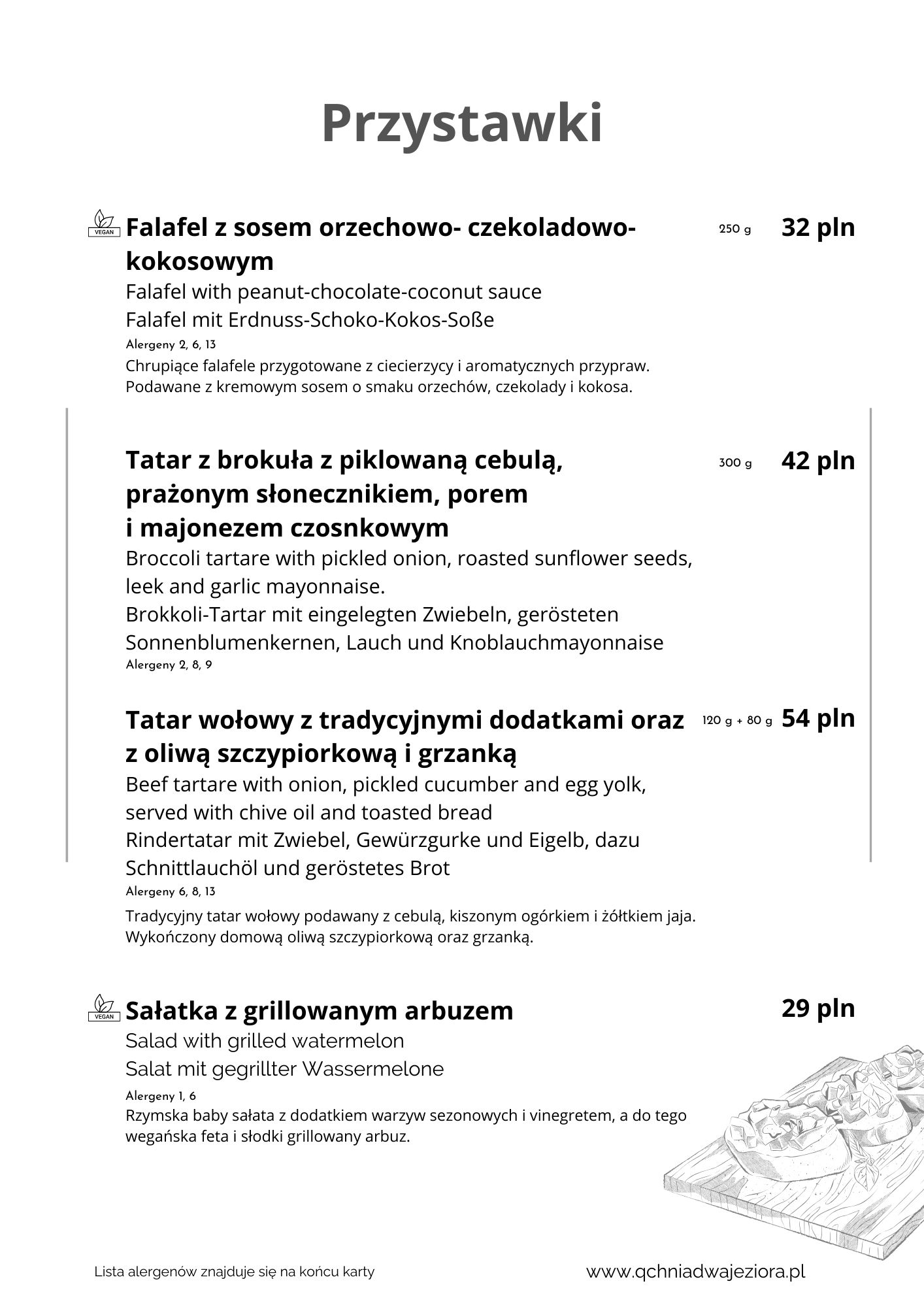 Nasza restauracja – Qchnia jest częścią resortu wypoczynkowego Dwa Jeziora, składającego się z butikowego pensjonatu, spa, restauracji, a także wielu atrakcji na terenie resortu tj: minigolf, sauna, sala gier, boiska sportowe itp.
